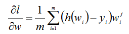 设α为步长,n为w向量大小,m为数据集大小,求w最小值的迭代过程为: